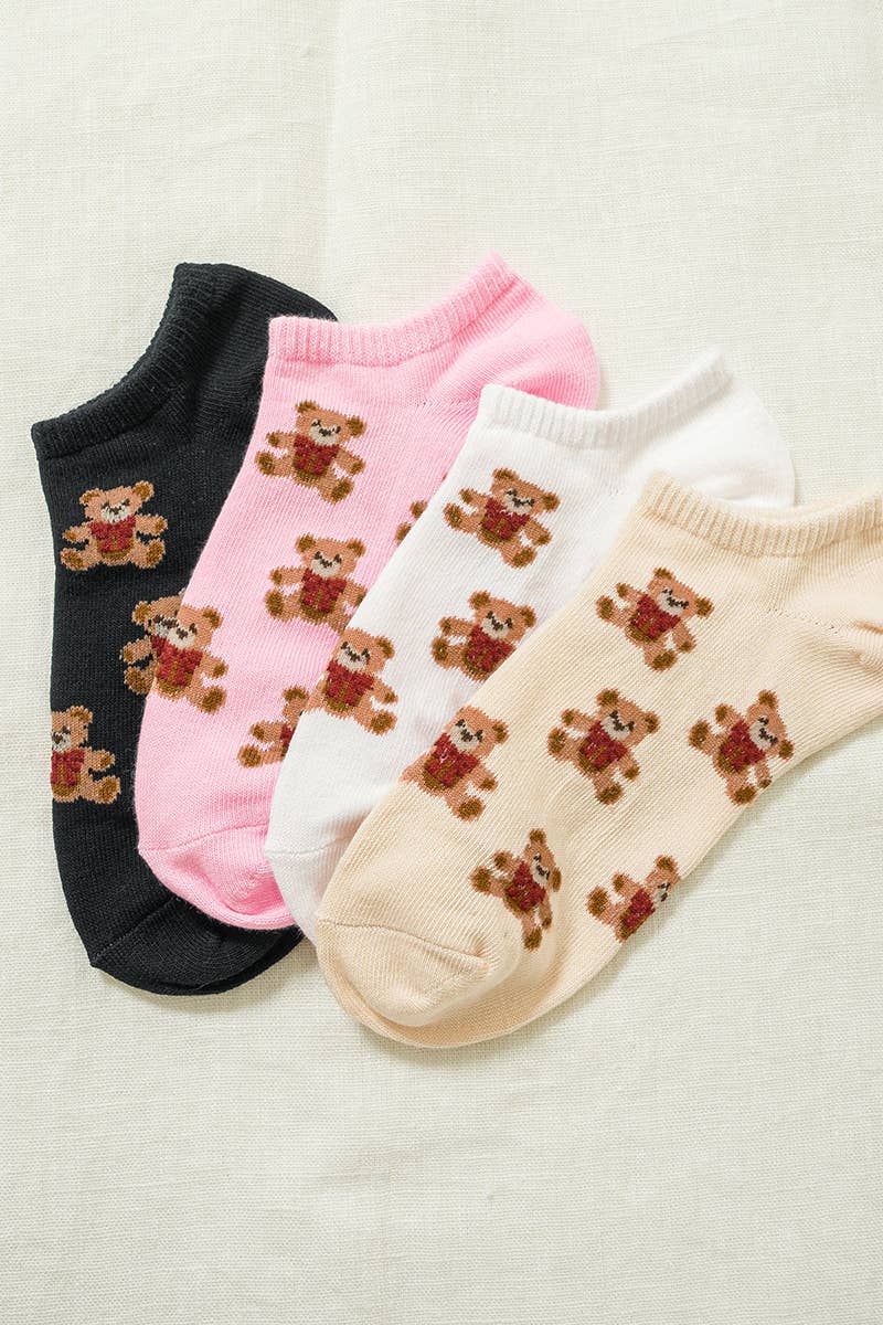Cute Bear Socks, 6 Pairs In 1 Pack ** Made In Korea - 6 Pairs In 1 Pack - Comfortable & Stretchy Material - Low-cut Design - Breathable Fabric Fabric 66% Cotton 32% Polyester 2% Spandex MADE IN KOREA