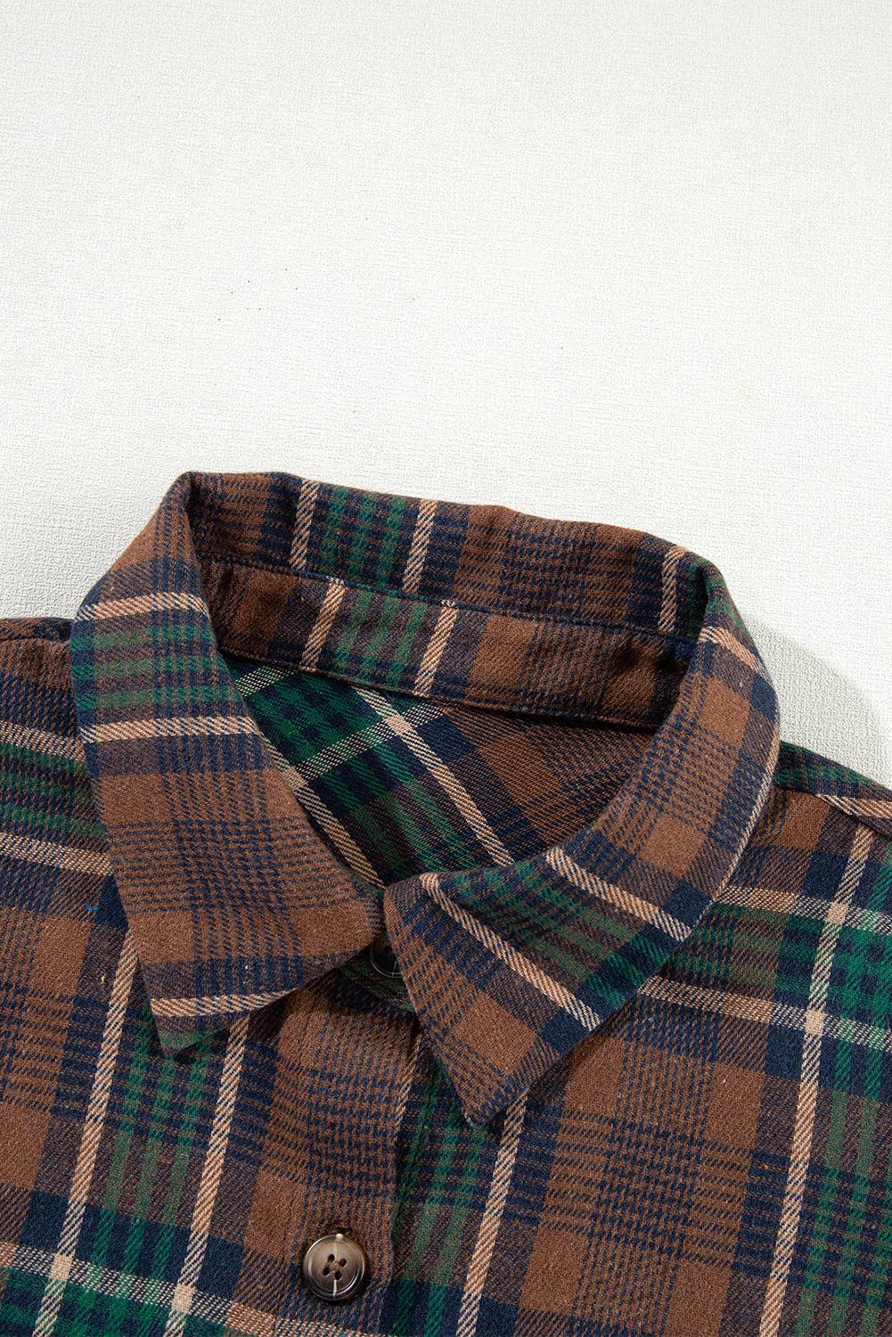 Plaid Chest Pockets Buttoned Shirt Jacket: Brown / M
